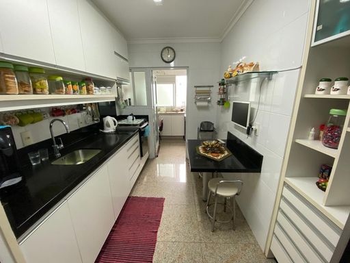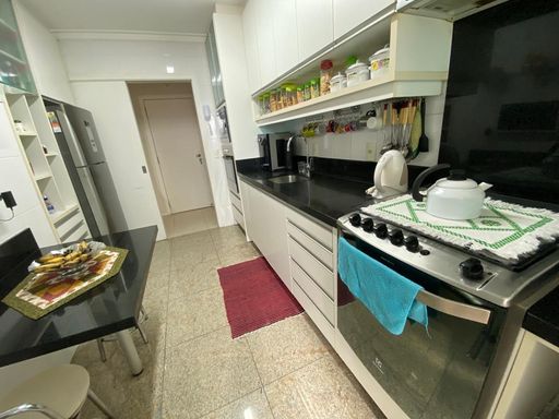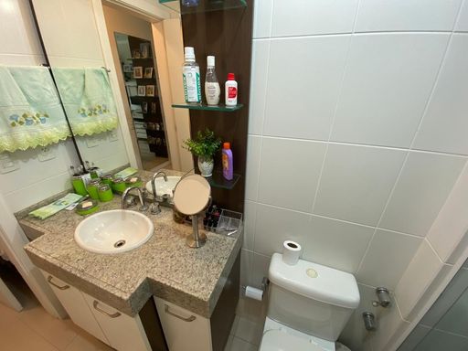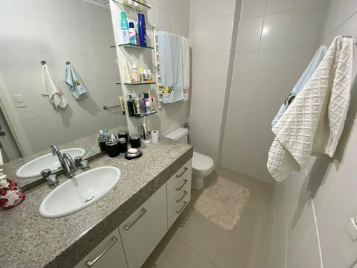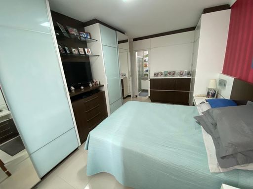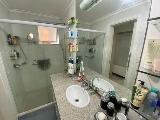 As suítes possuem armários planejados, janelas amplas e excelente iluminação natural. Os banheiros são equipados com box em blindex, armários e ventilação natural, reforçando o padrão de conforto do imóvel. A unidade dispõe também de uma vaga de garagem coberta e livre.