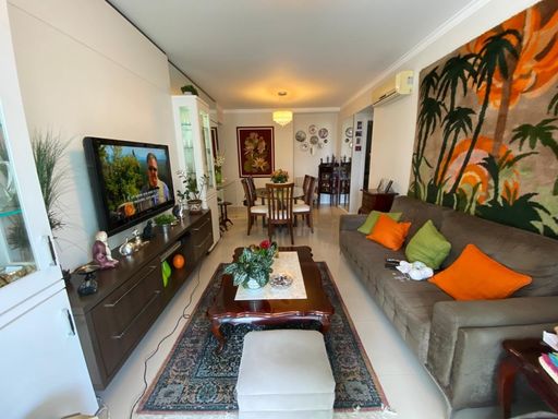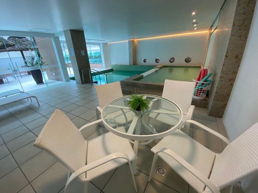 Com 97,93 m² de área privativa, o imóvel apresenta uma planta bem distribuída, com 2 suítes e um espaço social pensado para o dia a dia. A sala para dois ambientes se conecta à sacada, que oferece uma vista parcial para o mar, boa ventilação e um ambiente agradável para momentos de descanso. O apartamento conta ainda com lavabo, cozinha ampla com armários sob medida e área de serviço separada com banheiro de apoio.