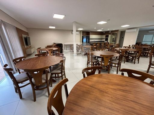 O condomínio oferece uma estrutura que atende bem à rotina, com portaria 24 horas, salão de festas com churrasqueira, quadra de esportes e elevadores, garantindo segurança e opções de lazer.