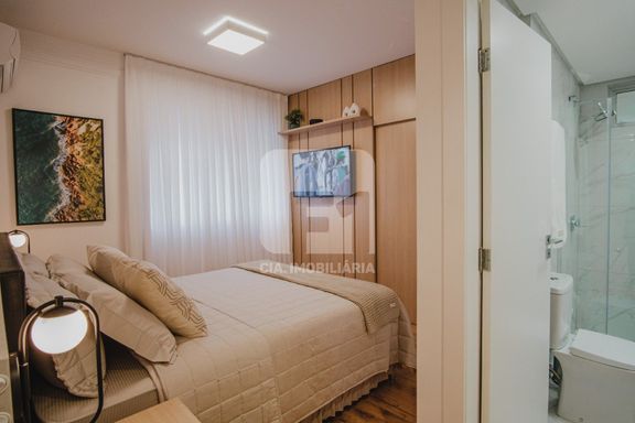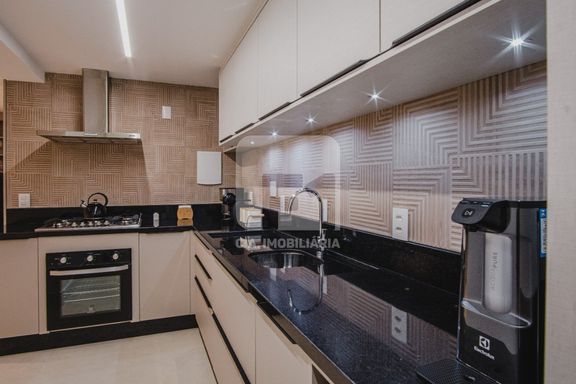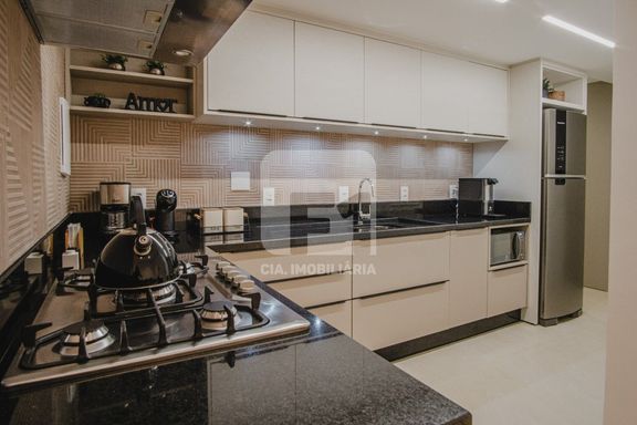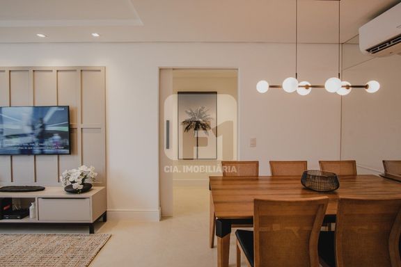 Este imóvel conta com 3 dormitórios, sendo 1 suíte com closet, além de uma sala ampla com ambientes de estar e jantar integrados, criando um espaço elegante e funcional. Totalmente mobiliado e decorado, o apartamento apresenta um cuidado especial nos detalhes, pronto para morar. A área de serviço complementa a praticidade da rotina.